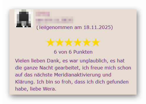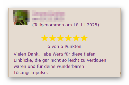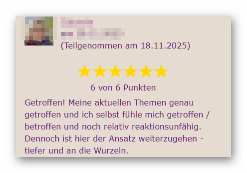 Teilnehmer*innen berichten regelmäßig von innerer Klarheit, spürbarer Erleichterung und einer neuen Verbindung zu sich selbst.